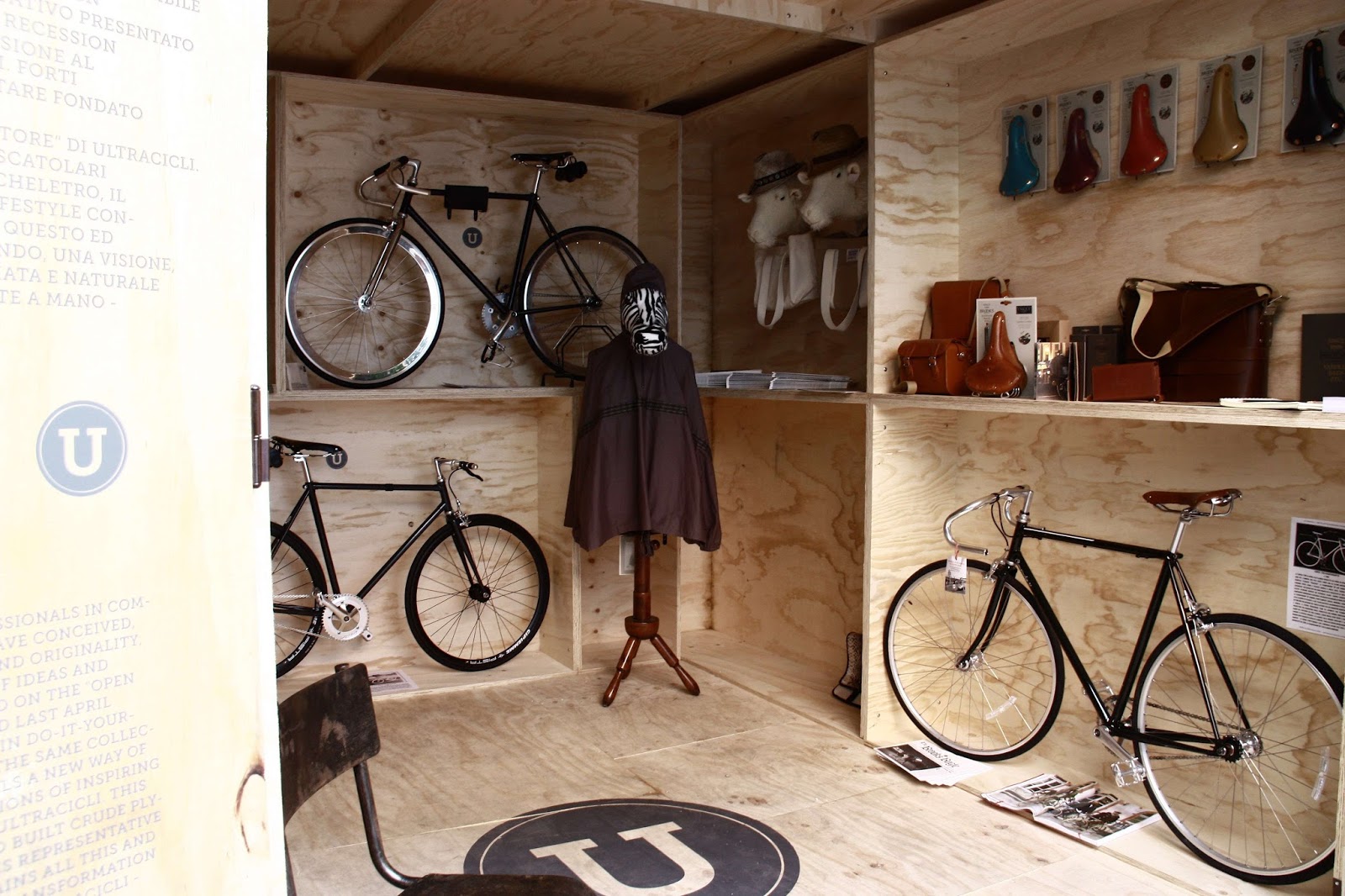 El diseño, compuesto por un marco de madera contrachapada sin tratar, hizo el papel de refugio para la exposición de productos de la marca Brooks England, que comercializa bicicletas, sillines o otros artículos para los amantes de las dos ruedas.